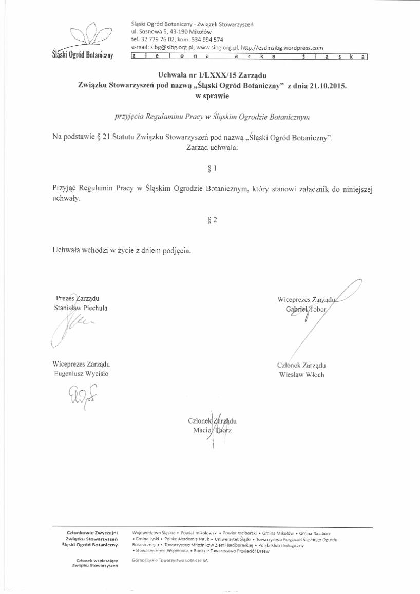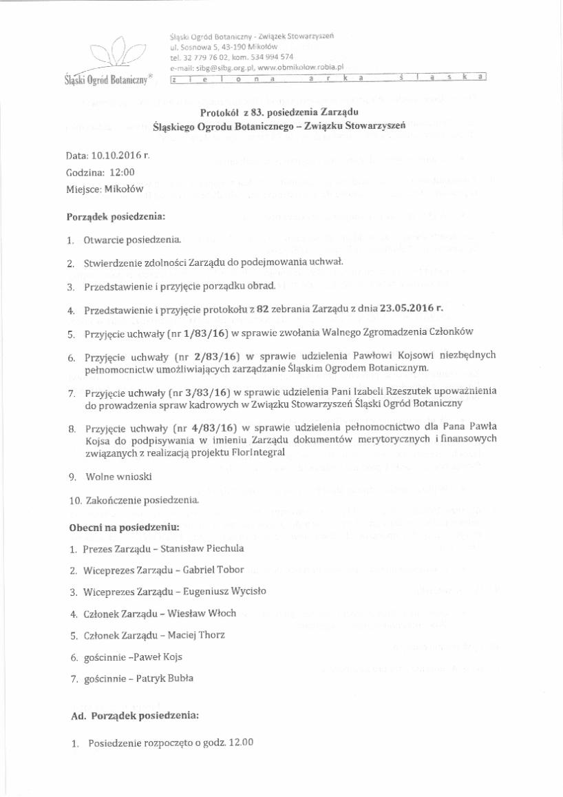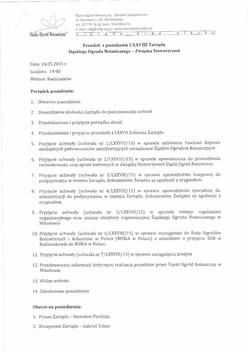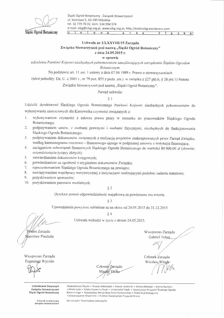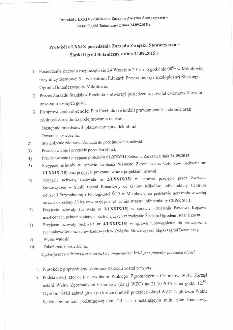 Dokumenty z XXVI Nadzwyczajnego Walnego Zgromadzenia Członków Związku Stowarzyszeń Śląski Ogród Botaniczny (30.01.2017)