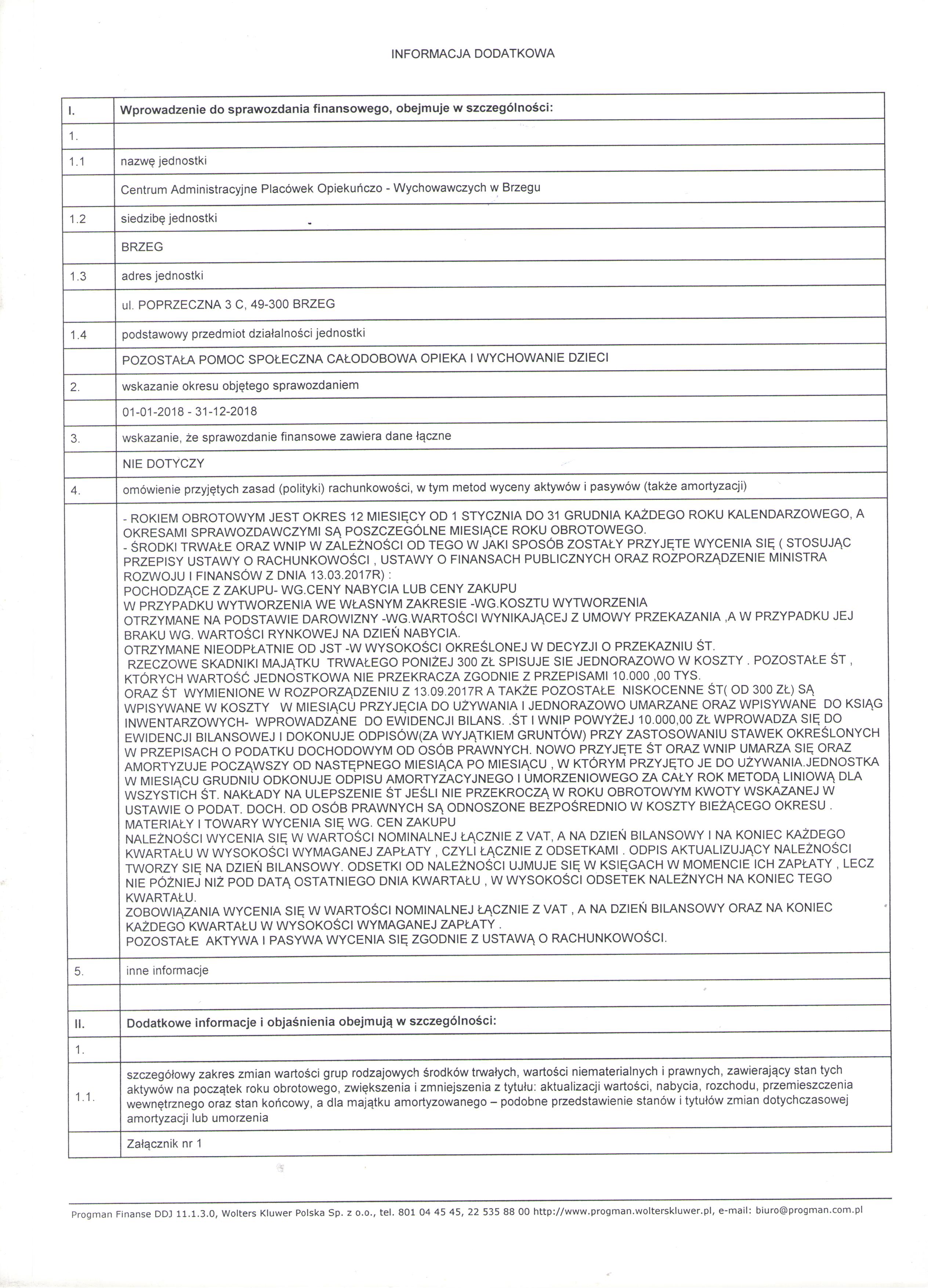 BIP > Bilans za 2018 rok > Informacja dodatkowa