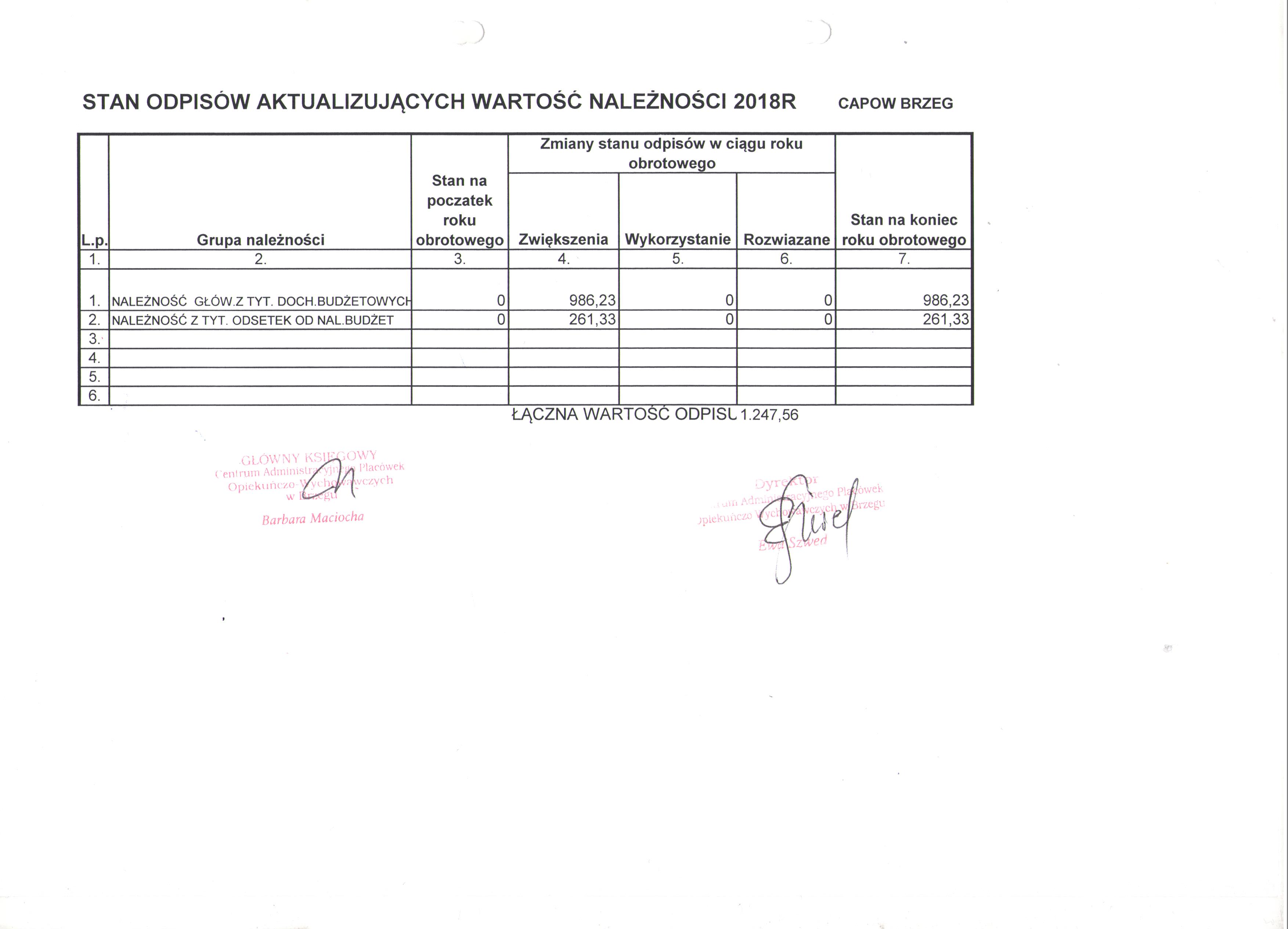 BIP > Bilans za 2018 rok > Stan odpisów aktualizujących wartość należności
